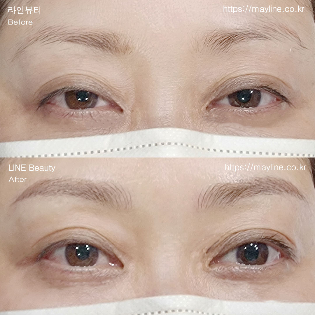 This is done when there are no eyebrow hairs or tattoo marks. First, we create a natural look with an embossed needle, and then add a gradation effect with a hand-tapping needle to create texture and volume.