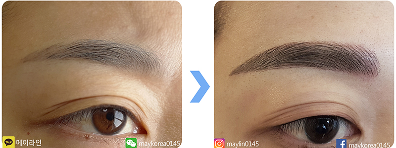 시술직후 눈썹은 시술전보다 자연스러워지셨고 진해지셔서 고객님은 만족해하였습니다.